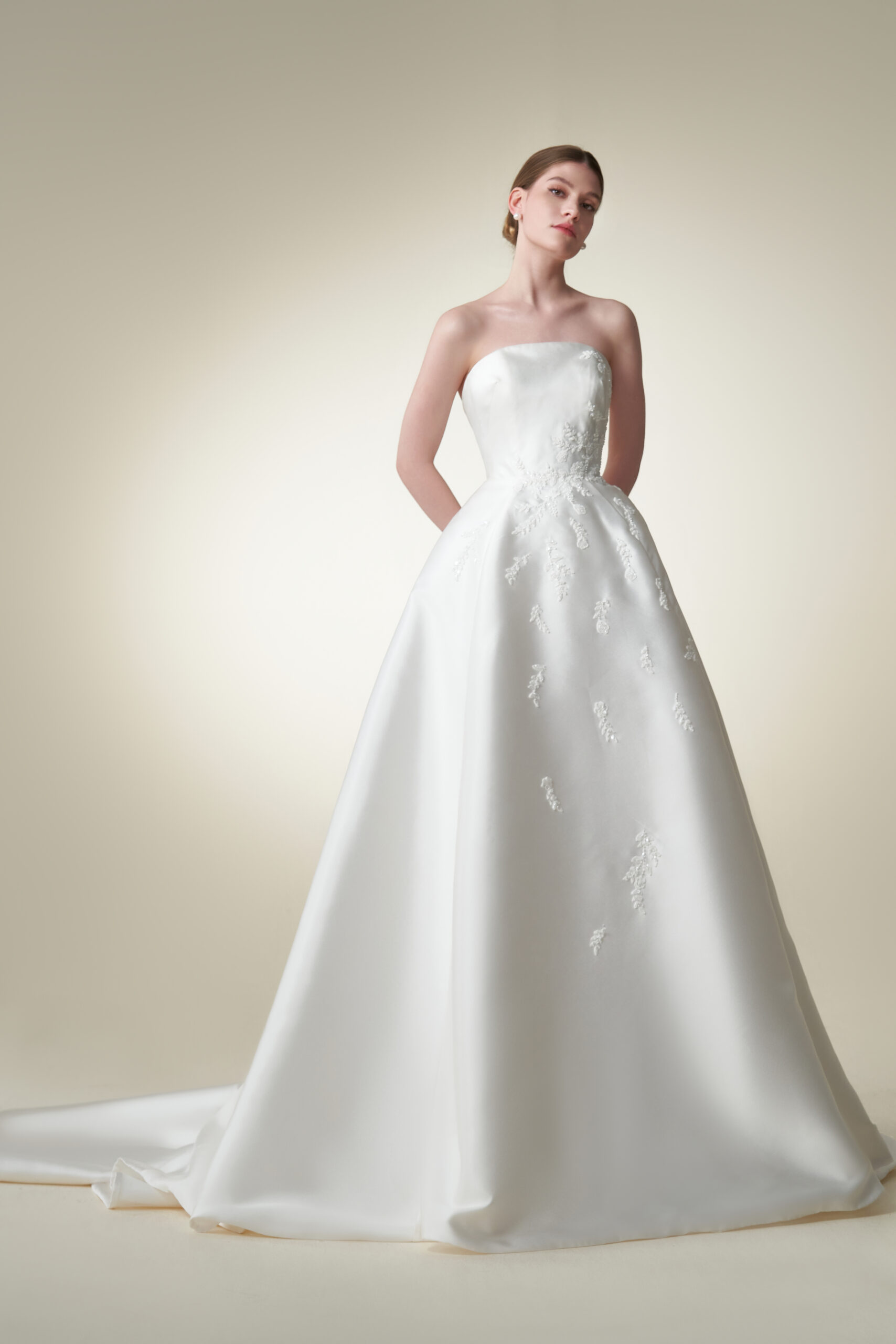 Introducing the Teresa Atelier White Privée collection, where luxury meets simplicity. This series is distinguished by its use of high-end fabrics such as satin, silk, jacquard, and fine silk, emphasizing minimalist elegance. Each gown in this collection is crafted with the finest materials, combined with perfect tailoring and expert craftsmanship, resulting in wedding dresses that exude quality and sophistication. The White Privée collection embodies a refined aesthetic, offering brides beautifully constructed gowns with a timeless, understated allure.